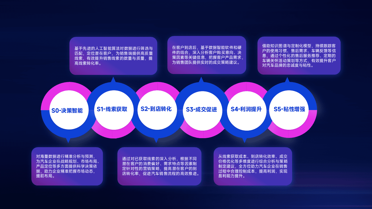 通过拓宽潜在客户来源、、、优化线索分配并提高到店转化率,,,以增强销售效率。。。同时,,利用线索数据不断优化分析模型,,,有效提升转化率,,,,扩大营销影响力。。